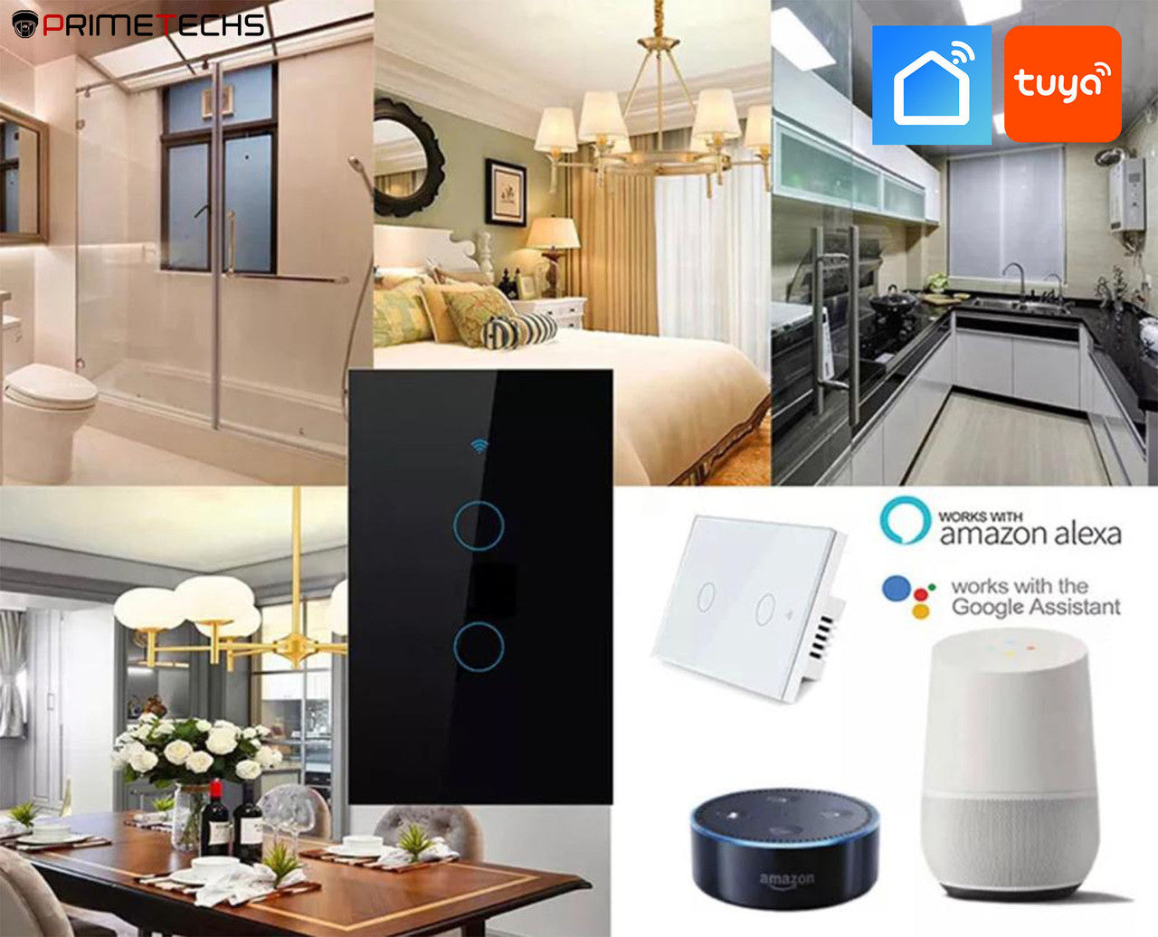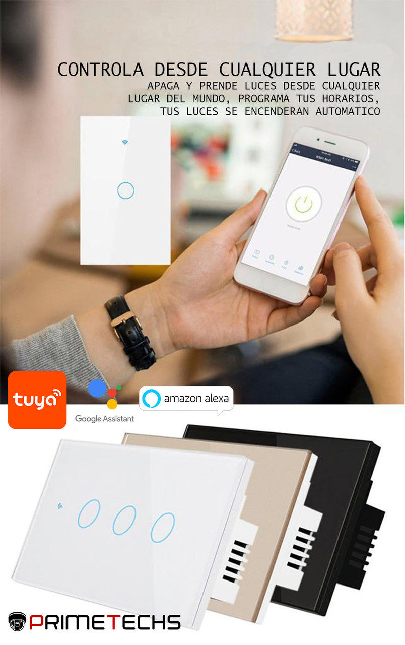 Interruptor eléctrico virtual de 2 vía operado con APP Tuya, programado por tiempo, por presión y por voz con Alexa y Google Home. SKU: ACC000-51