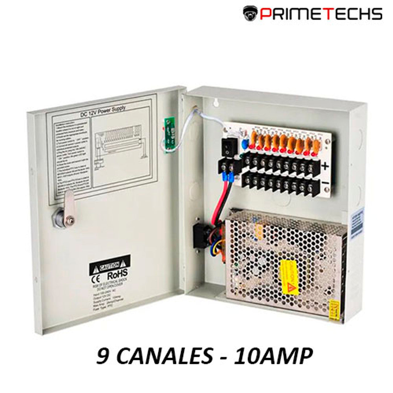 Fuente de poder regulada 12V / 10 Amperes / Distribuidor para 9 cámaras / 1.1 A MP Máximo por canal / CERTIFICACION UL